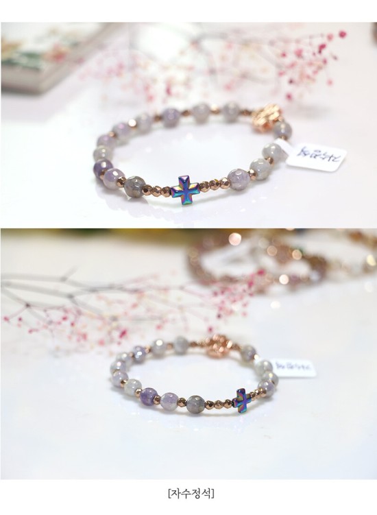 6mm 컷팅 천연보석알 + 컷팅로즈골드 헤미타이트(큐빅십자가)
